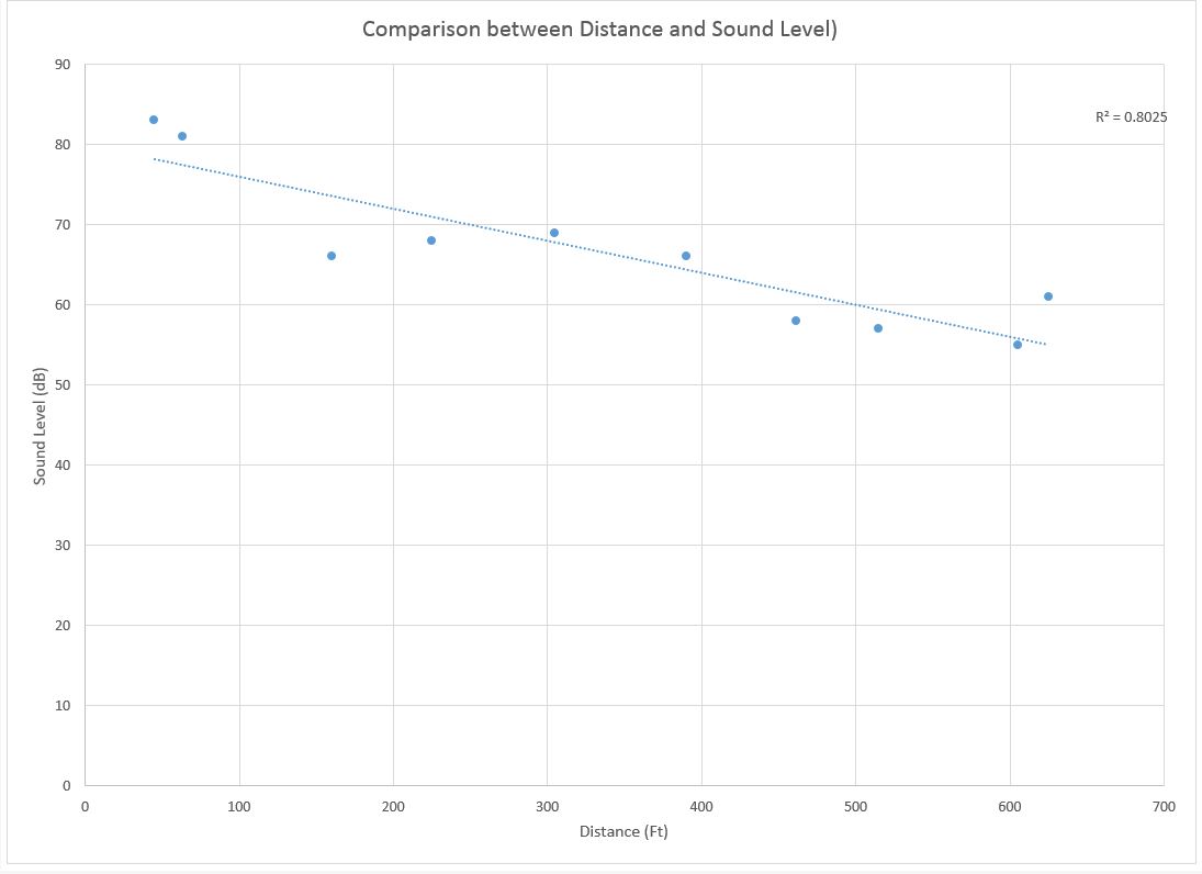 Scatterplot 1: Comparison Between Distance and Sound Level